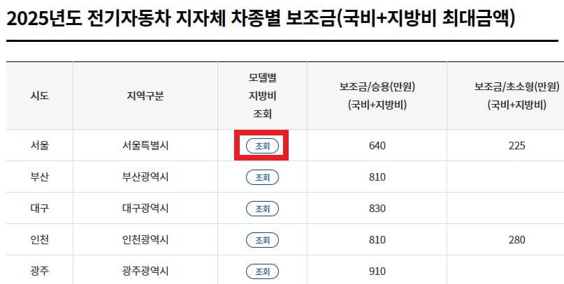 ② 지차체 차종별 보조금 클릭하기